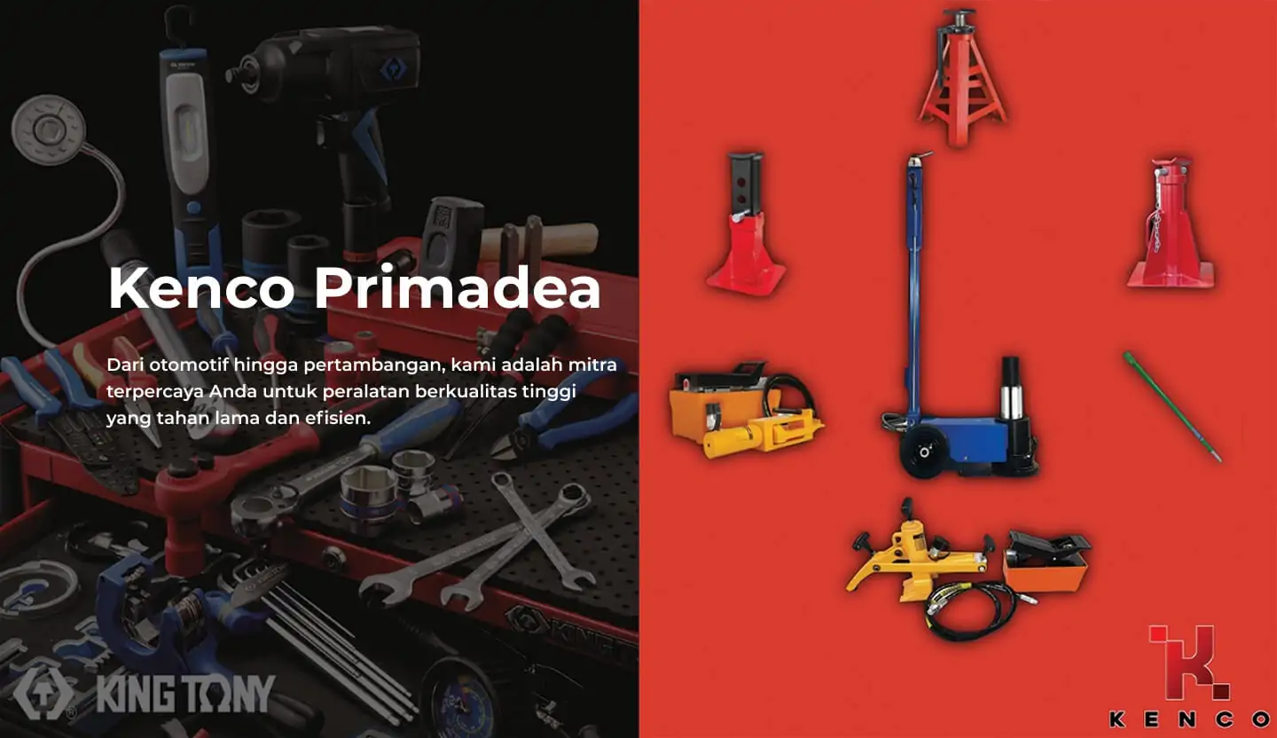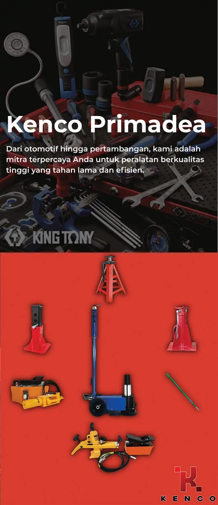 Kenco Primadea adalah sumber terpercaya Anda untuk alat-alat industri dan pemeliharaan berkualitas tinggi. Kami menawarkan berbagai produk yang lengkap untuk memenuhi setiap kebutuhan profesional Anda. Brand kami yaitu King Tony, Makute, KENCO, AME Intl, Gray Tools, Chicago Pneumatic, Millwaukee, National Plastic & Rubber.